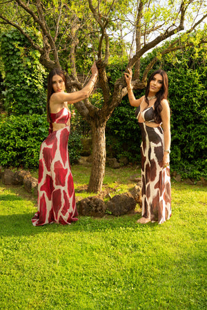 Abito lungo scollato asimmetrico, spalline regolabili, lampo dietro. Coppe preformate, foderato sotto. Spacco laterale.