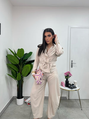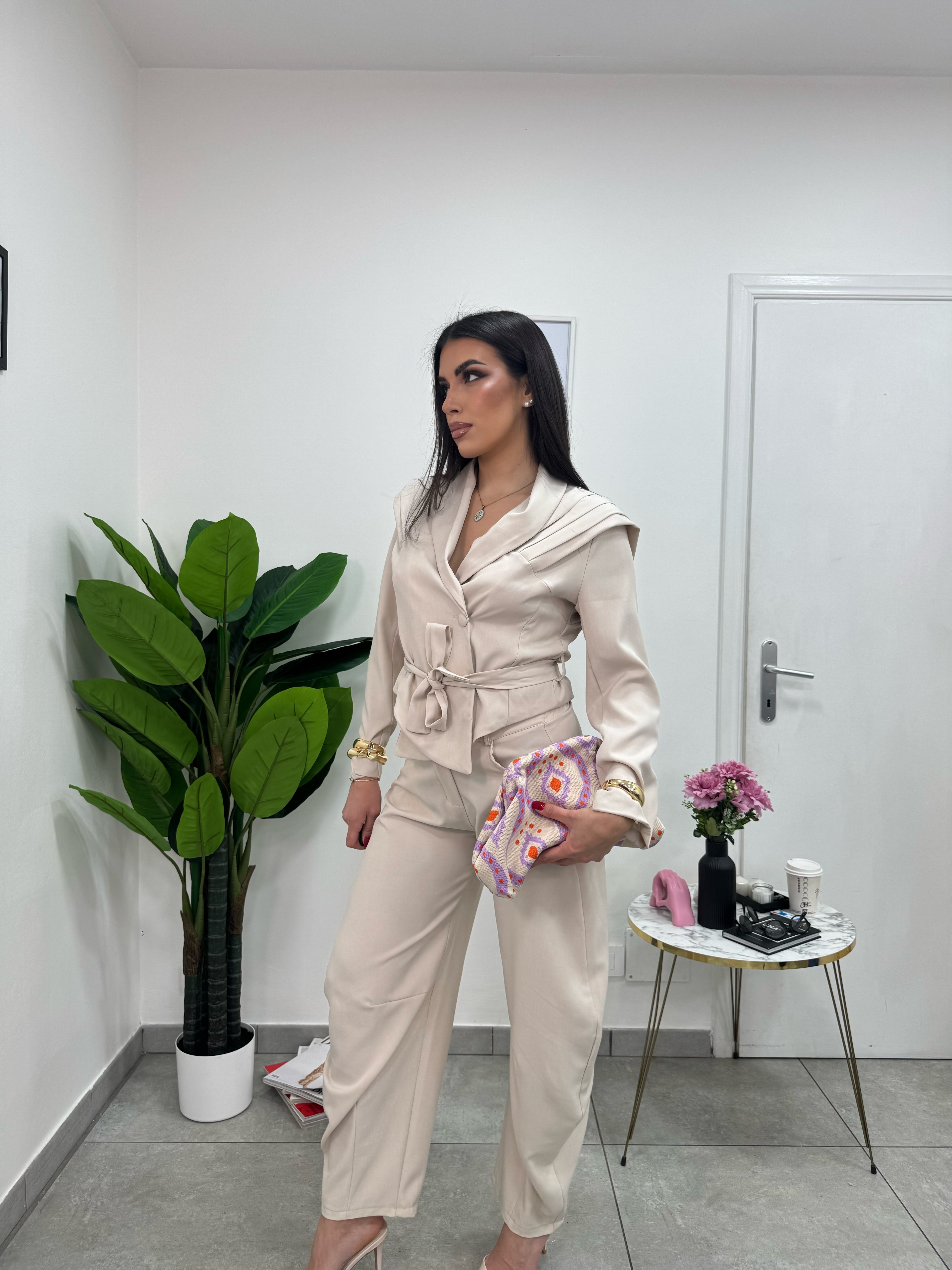 Blazer crop Monopetto con cintura, spalline imbottite effetto spalla drappeggiata. Foderato.