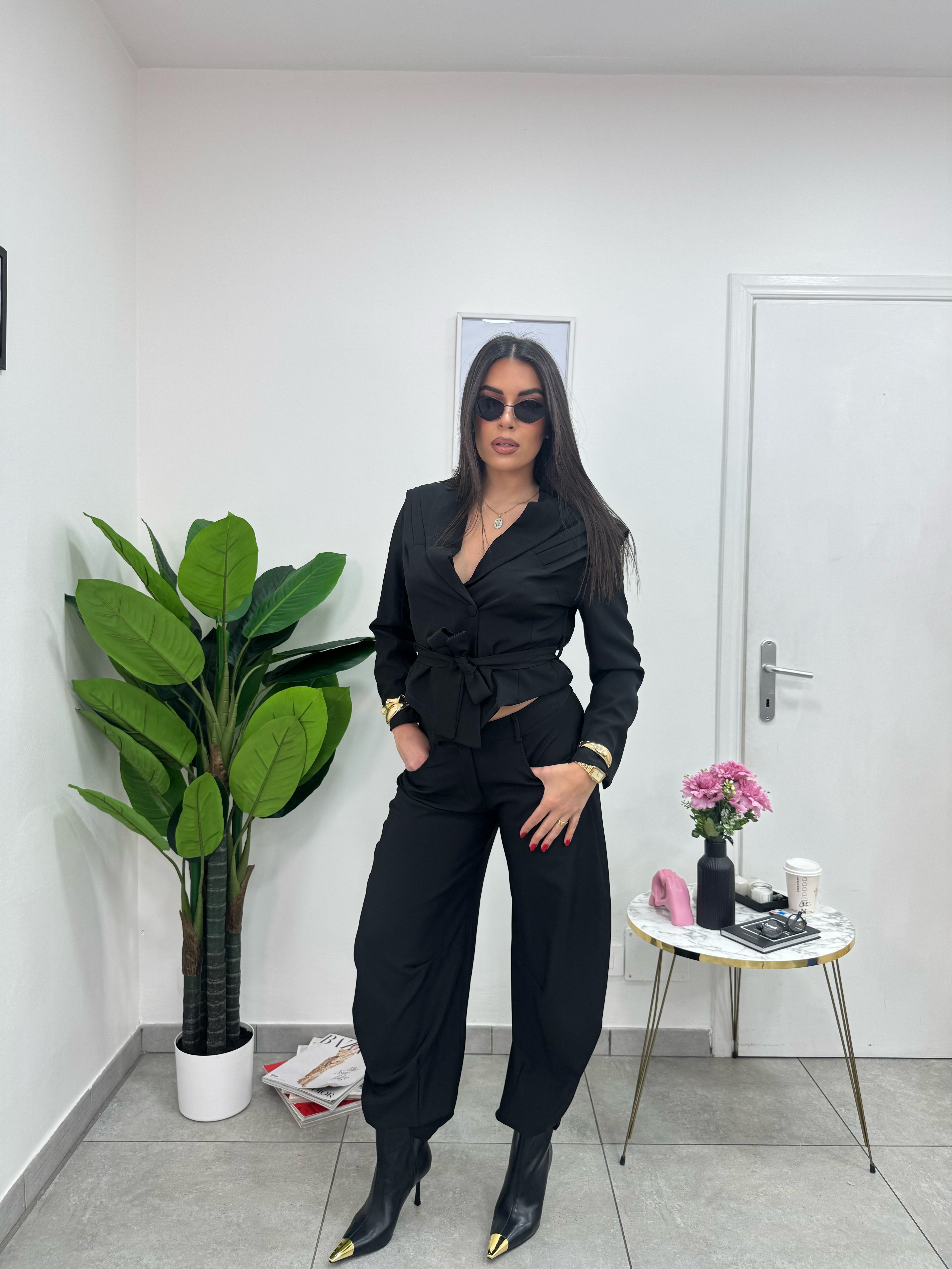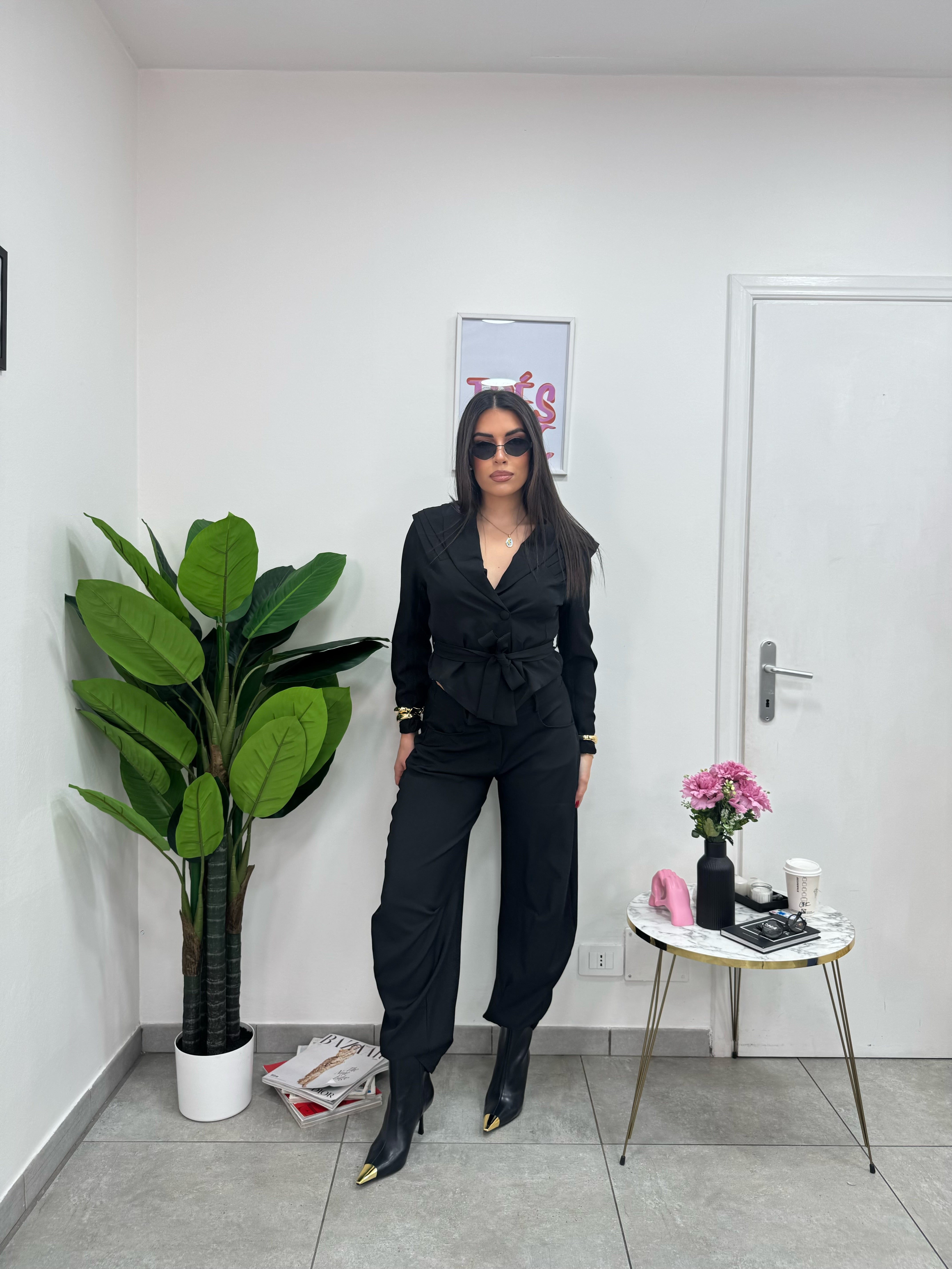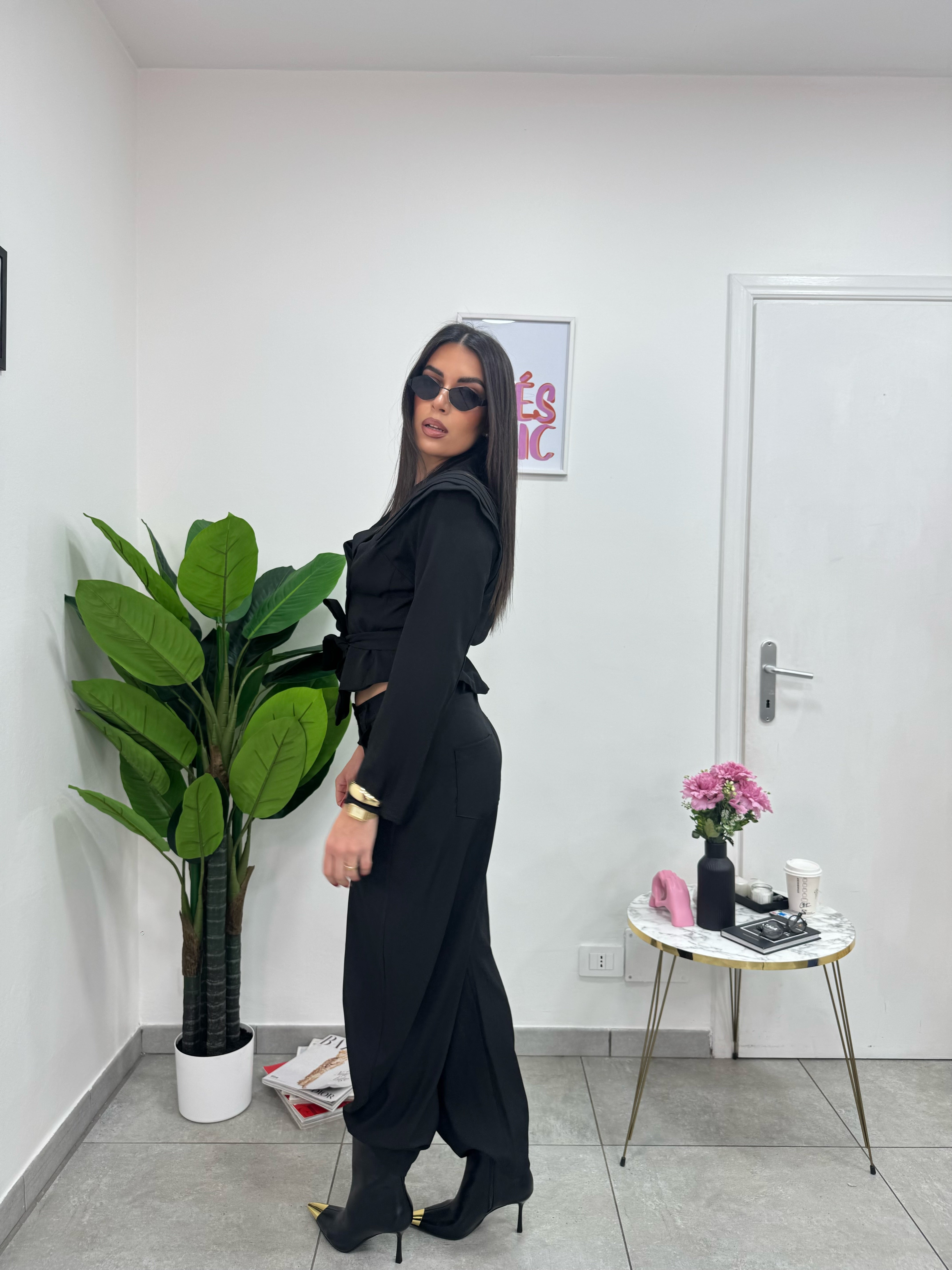 Blazer crop Monopetto con cintura, spalline imbottite effetto spalla drappeggiata. Foderato.