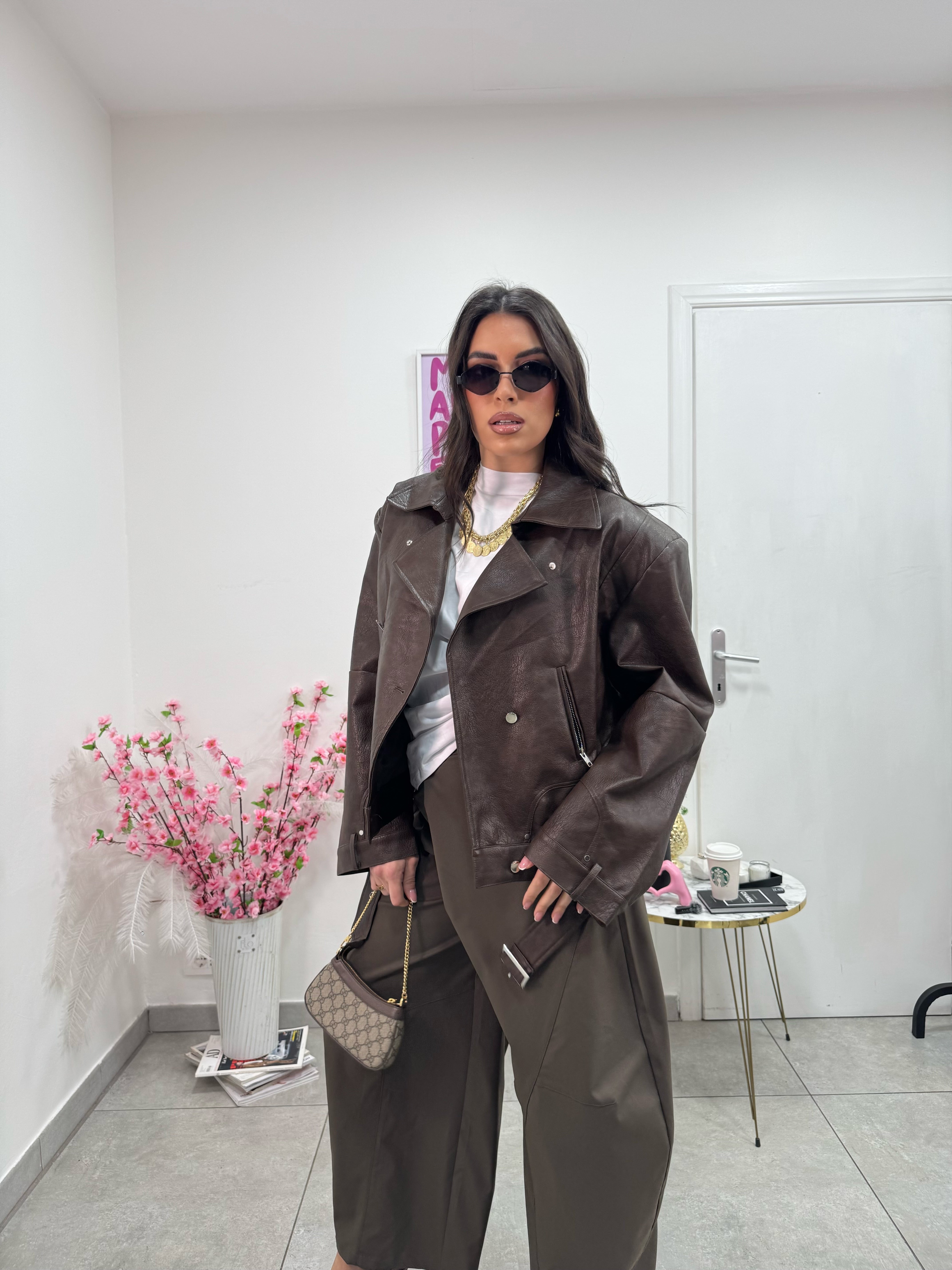 Giacca Ecopelle Strong Marrone