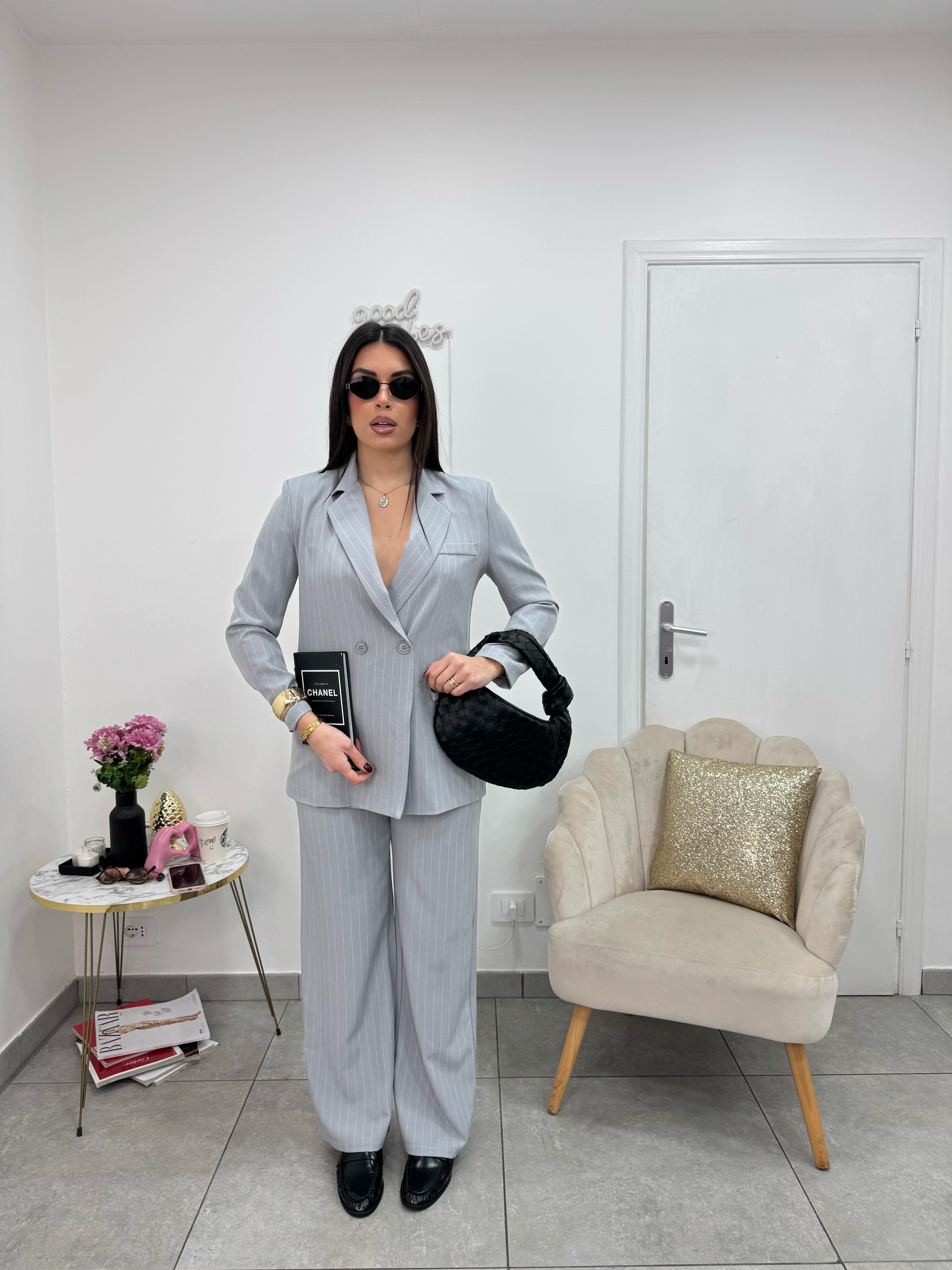 Giacca Gessata Doppiopetto Grigia