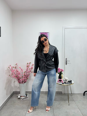 Trench crop in ecopelle con cintura in vita.
