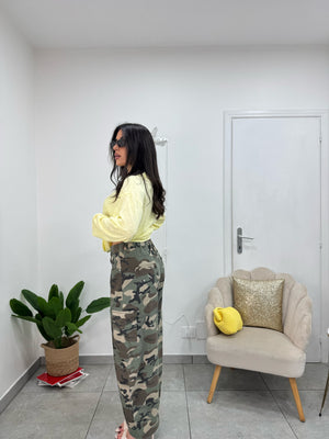 Jeans balloon cargo, con tasche laterali e motivo camouflage.