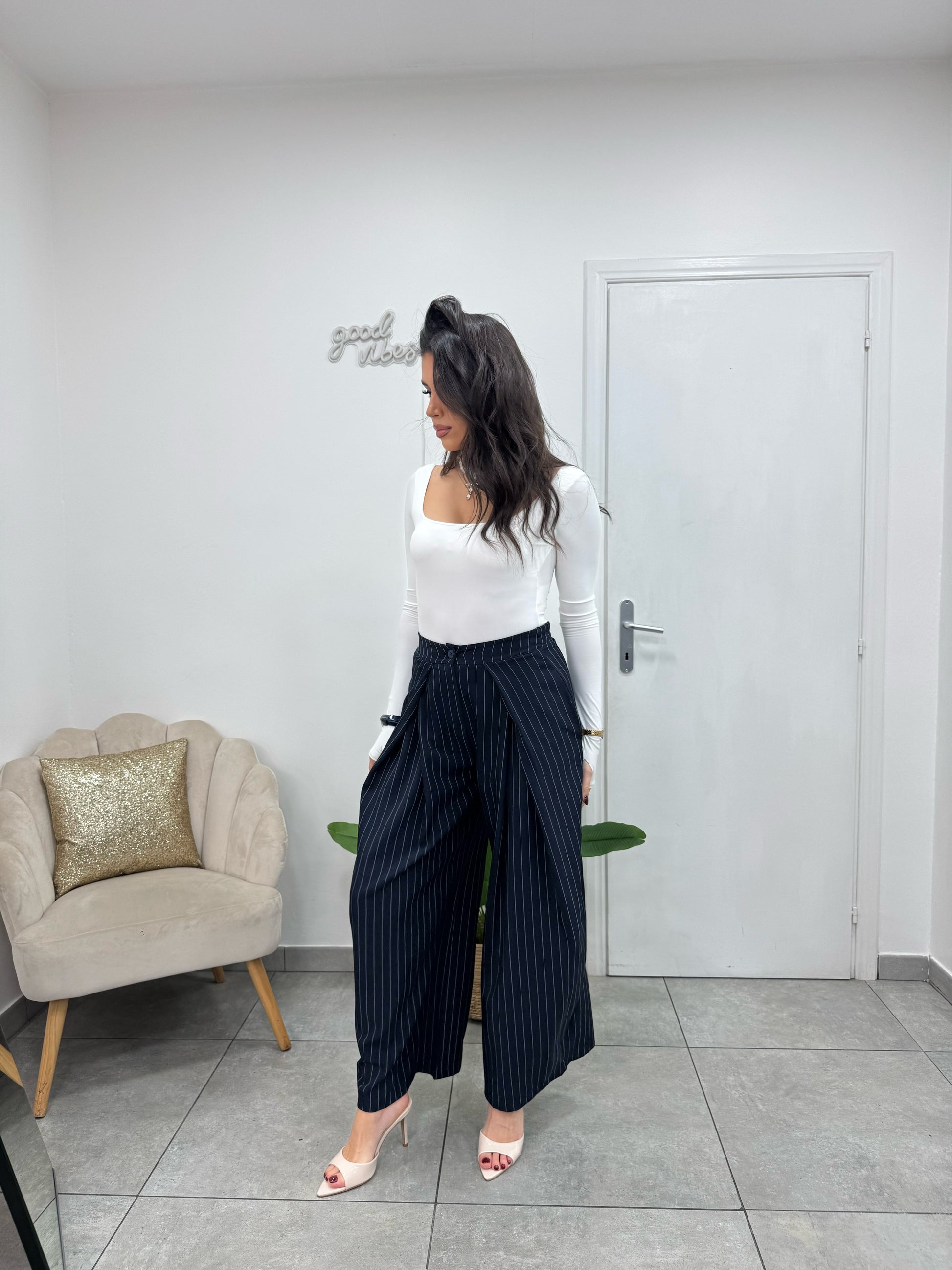 Body con scollo ampio avanti e dietro, manica a guanto.