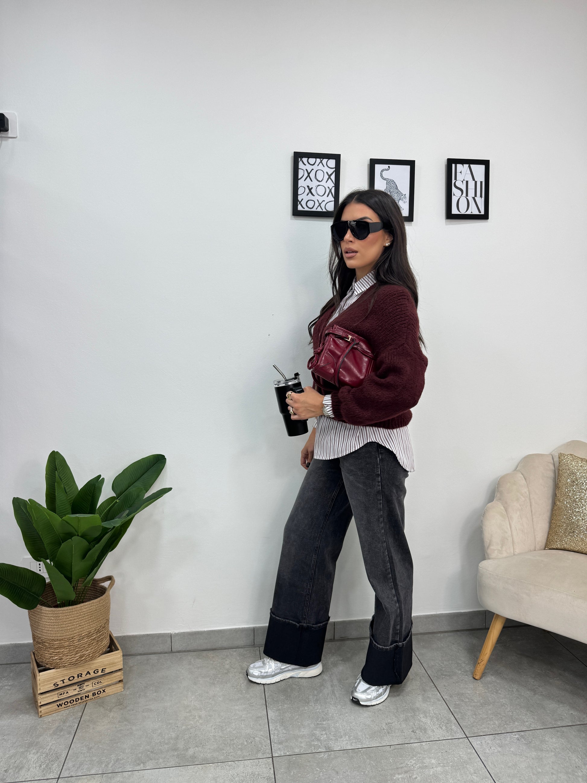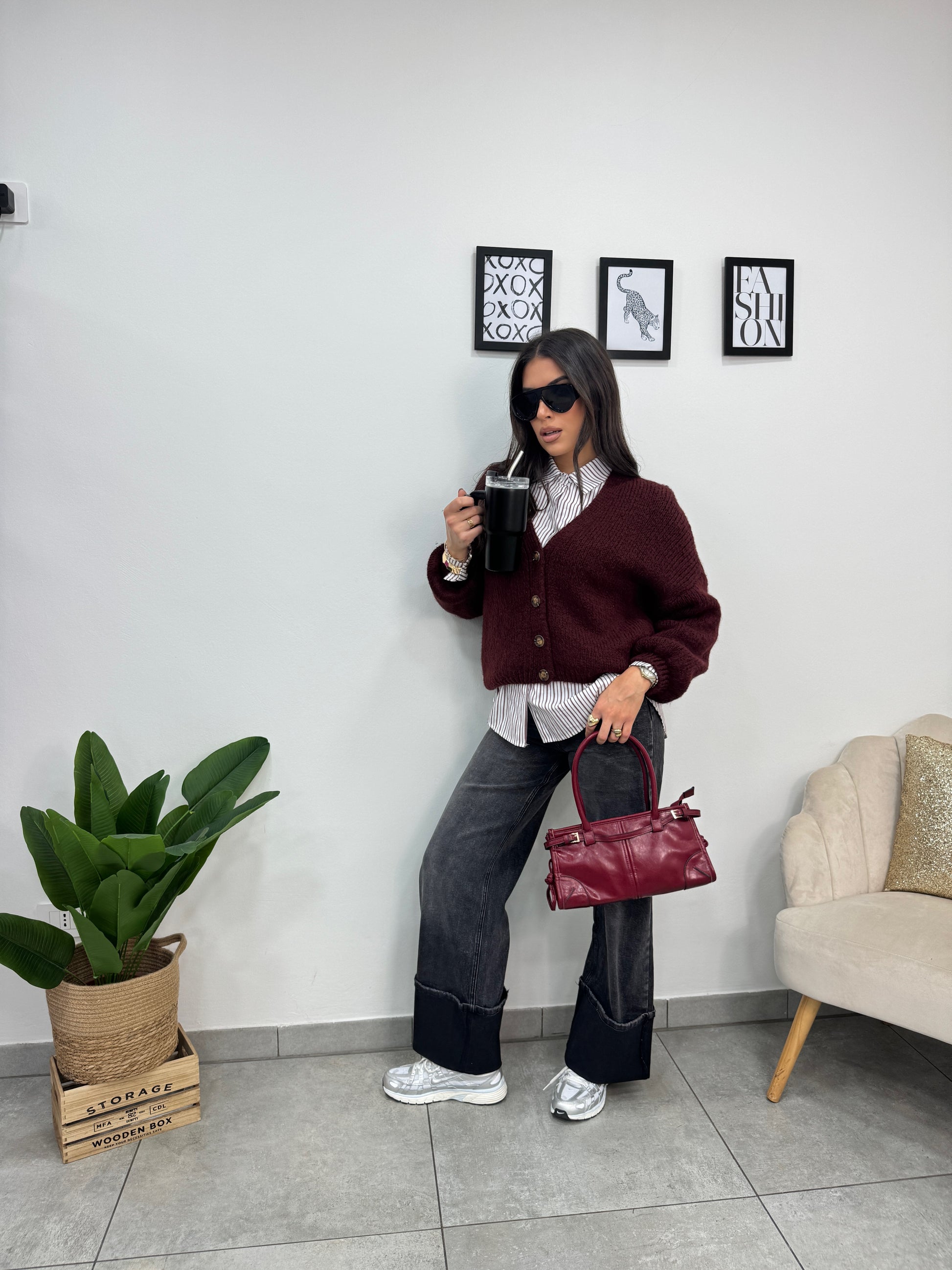 Cardigan classico tinta unita, oversize, bottoni effetto legno.