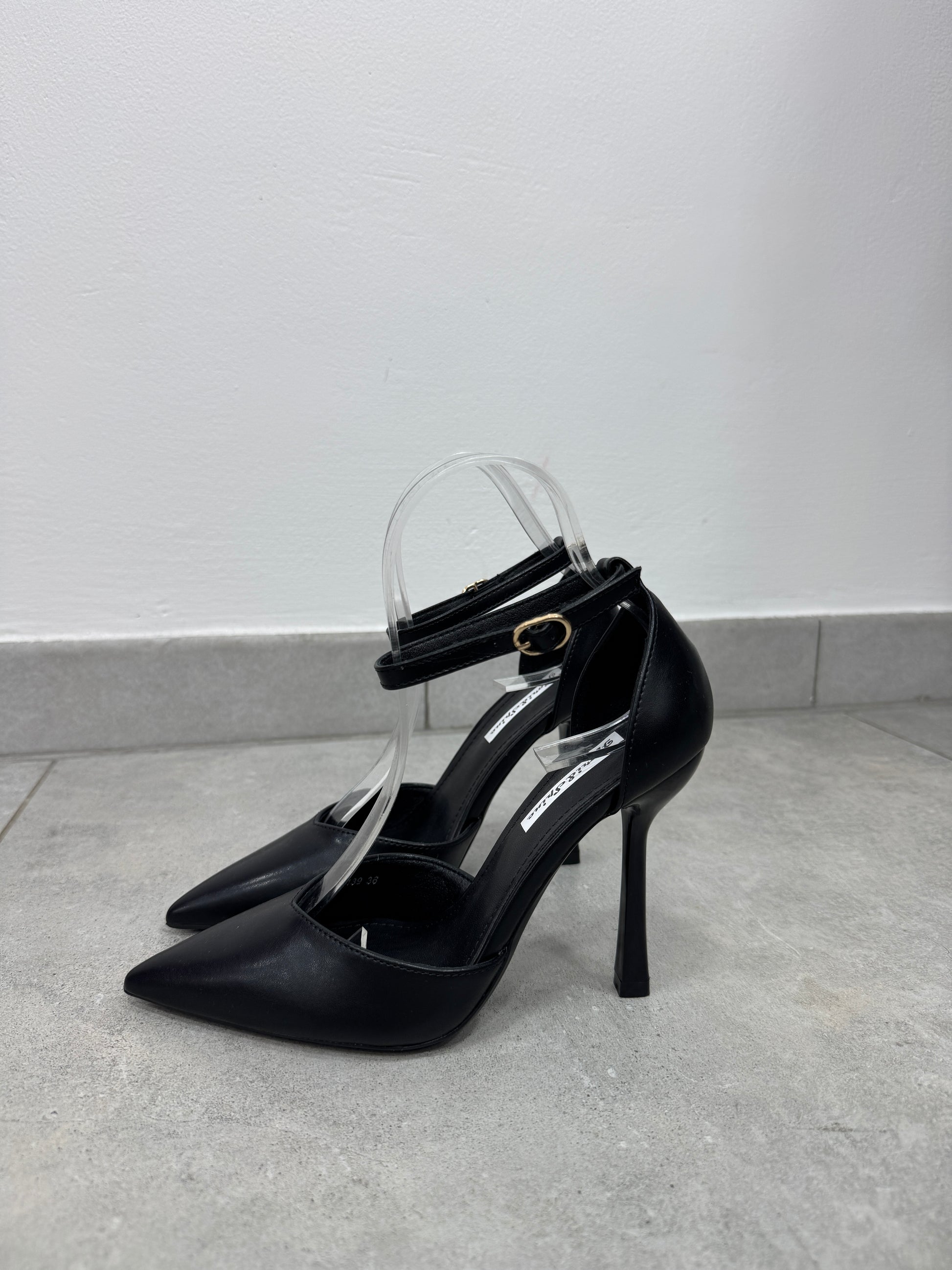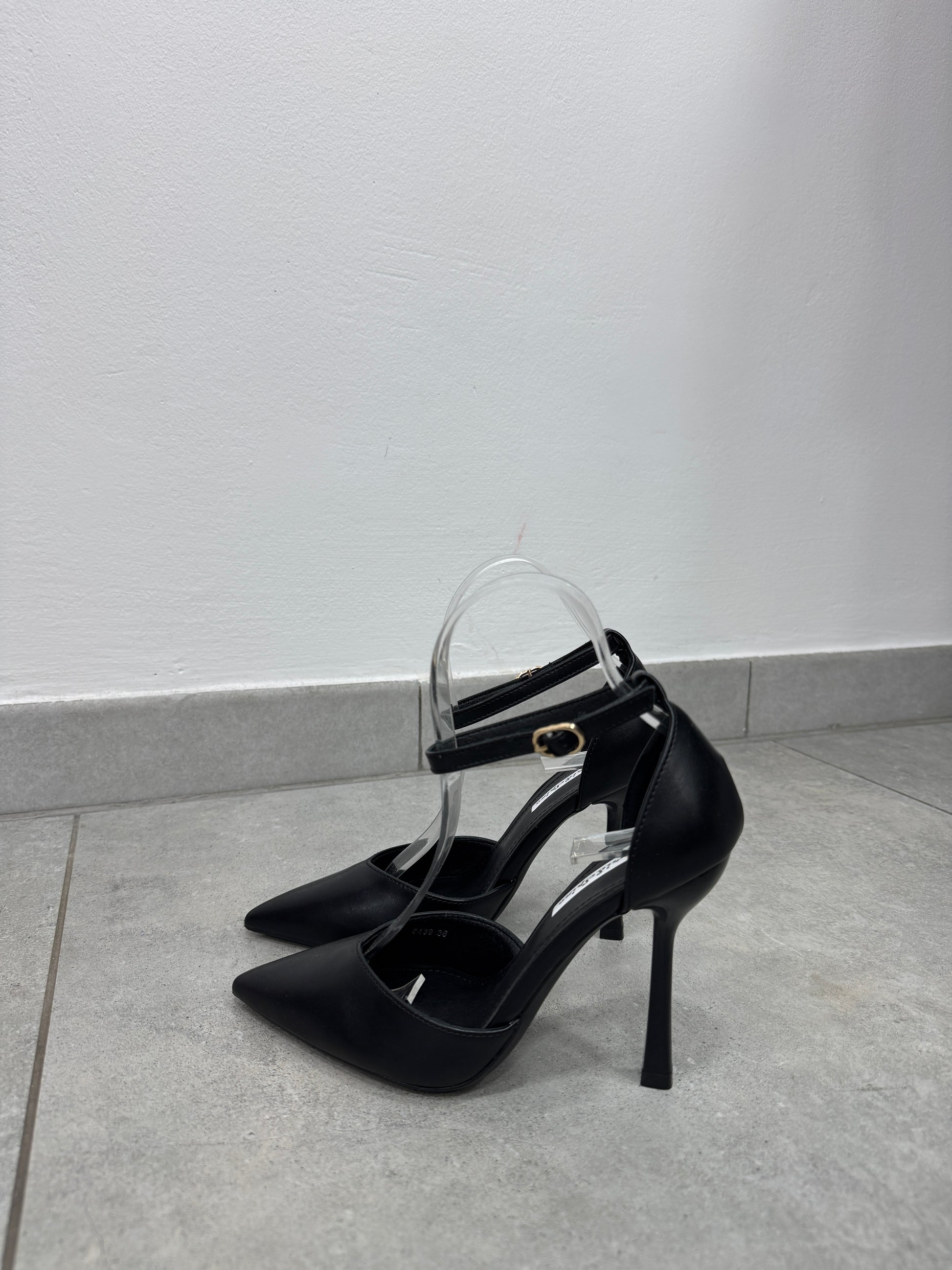 Décolleté ecopelle con cinturino regolabile e fibbia oro. Tacco circa 8 cm.