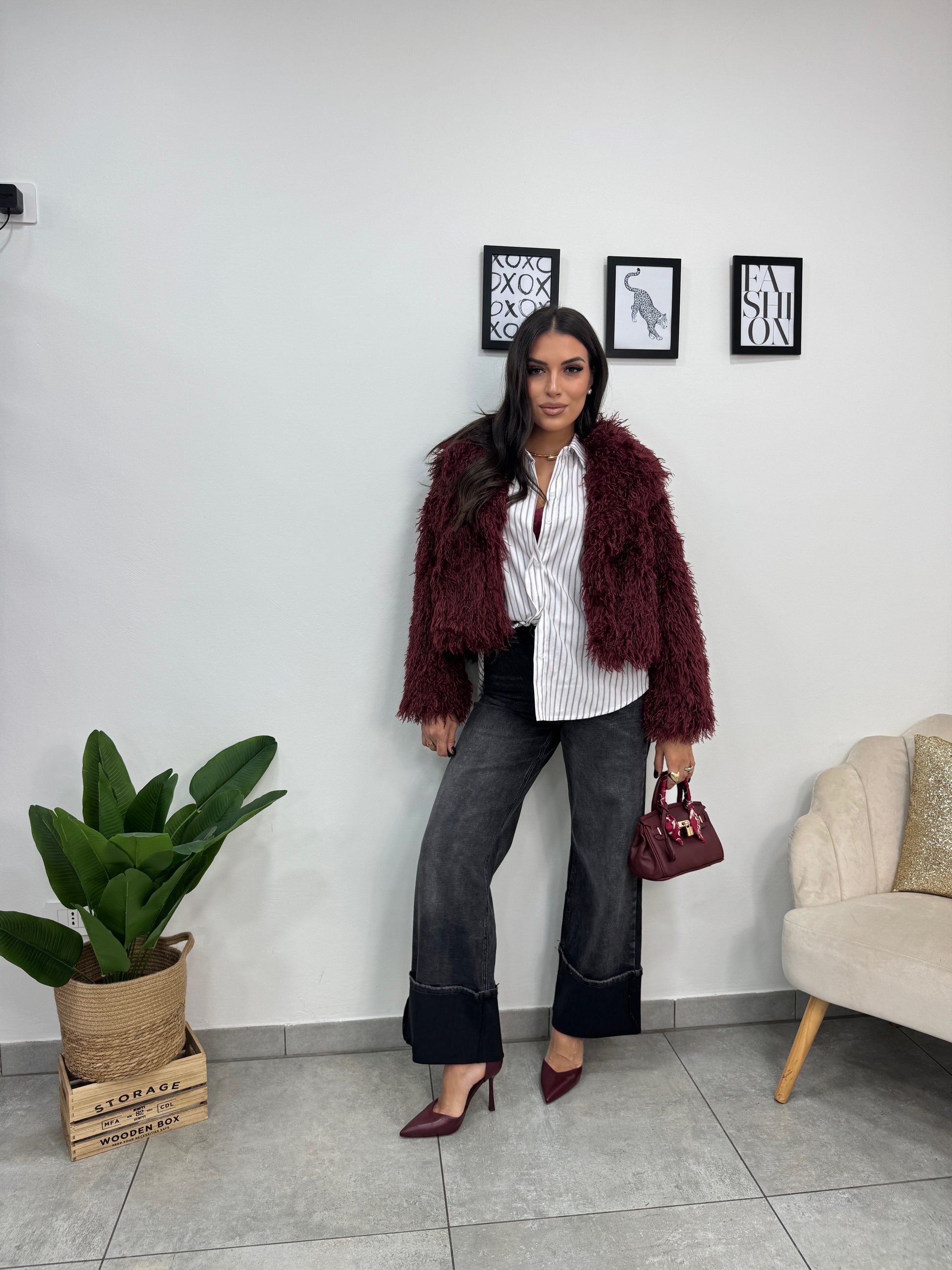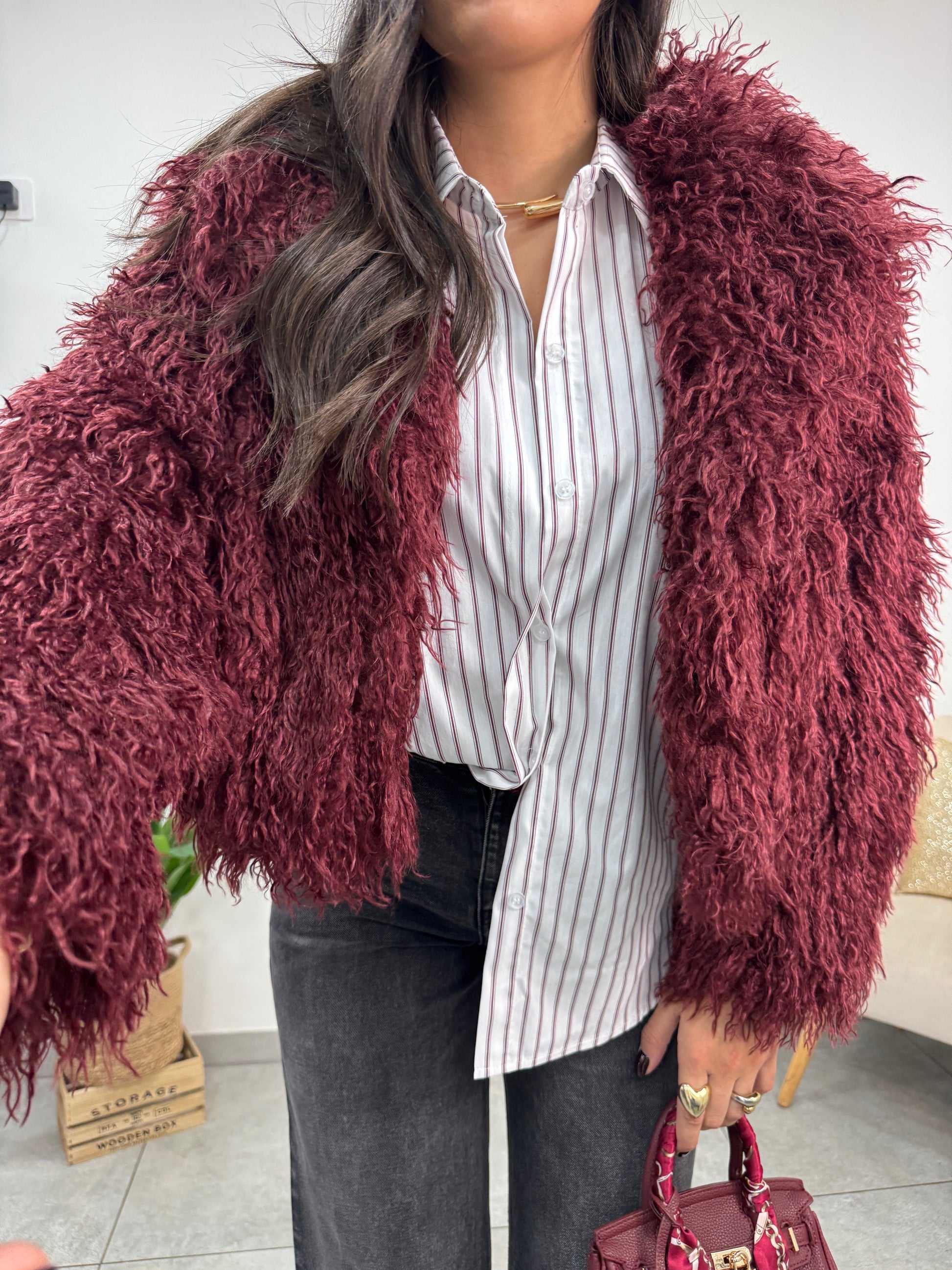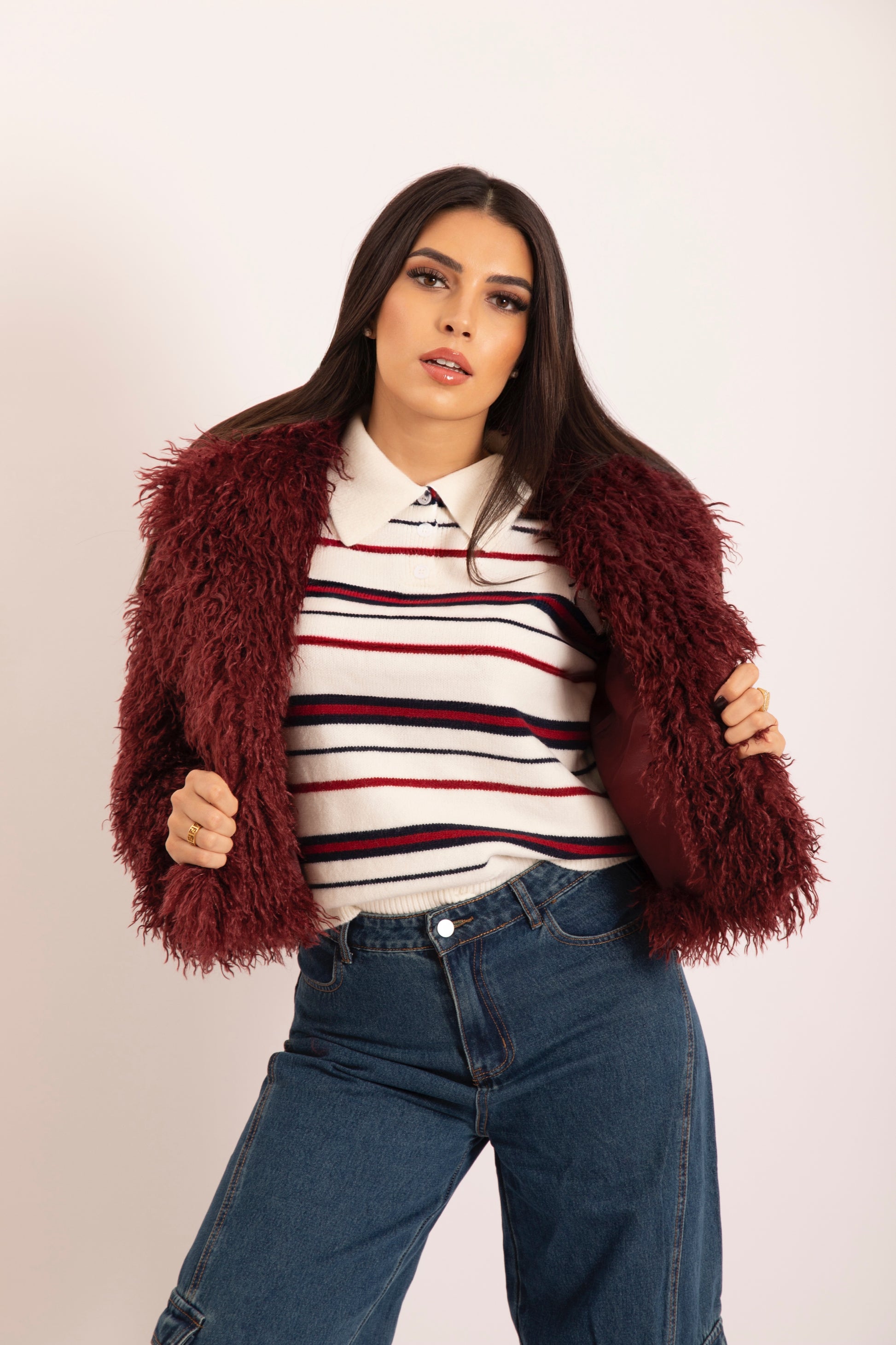 Ecopelliccia foderata internamente con pelo riccio, chiusura gancio, con tasche.