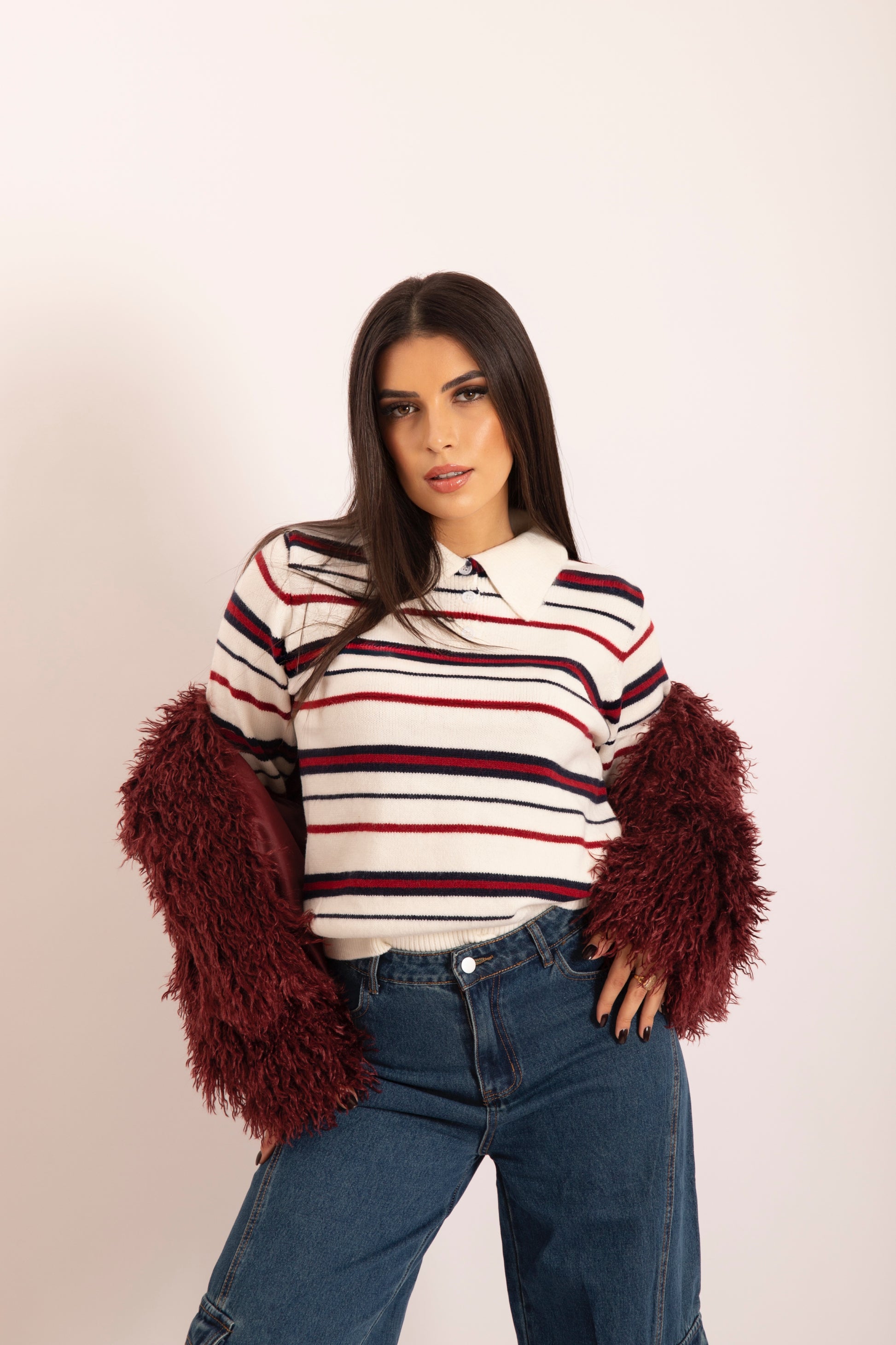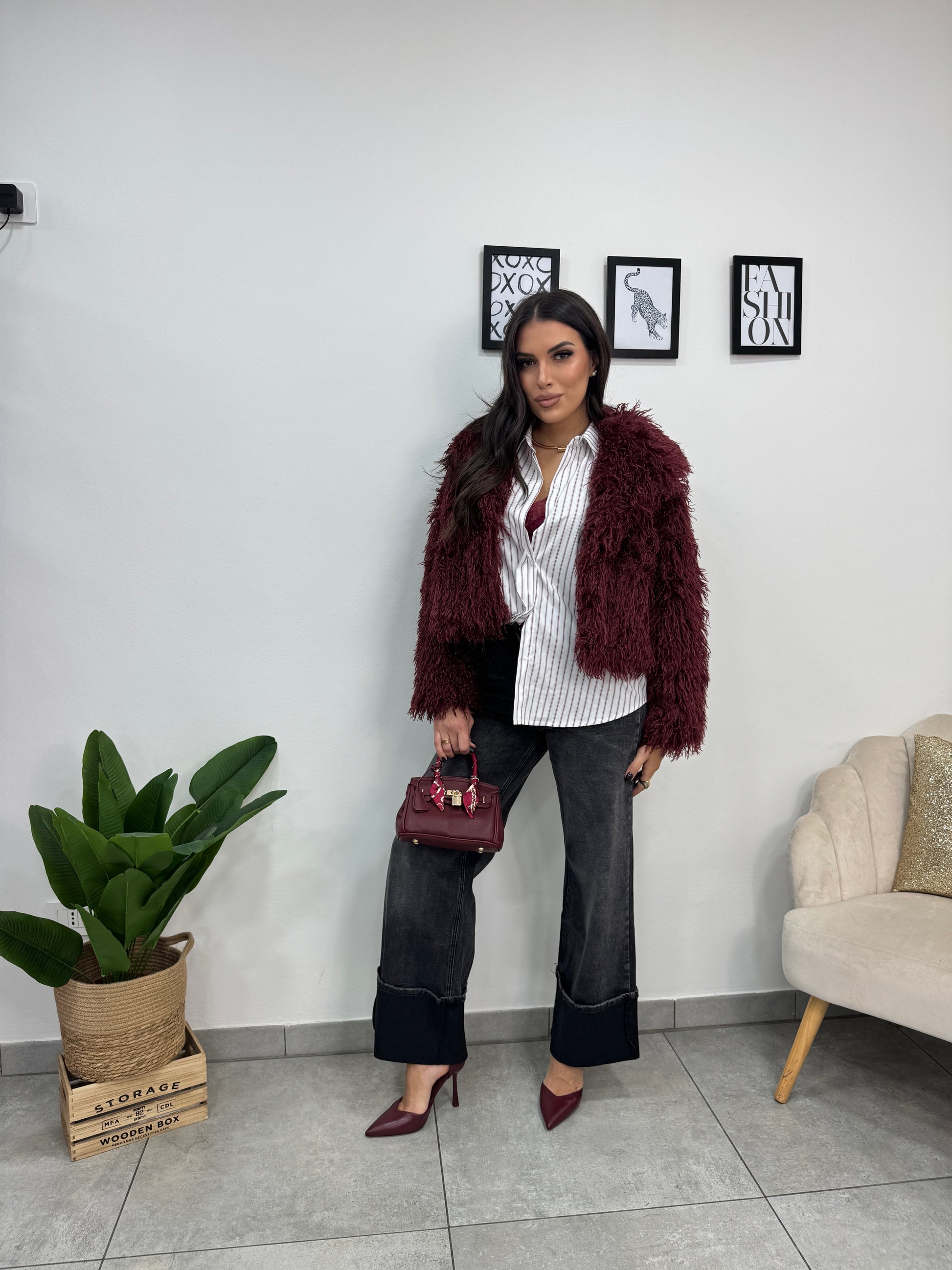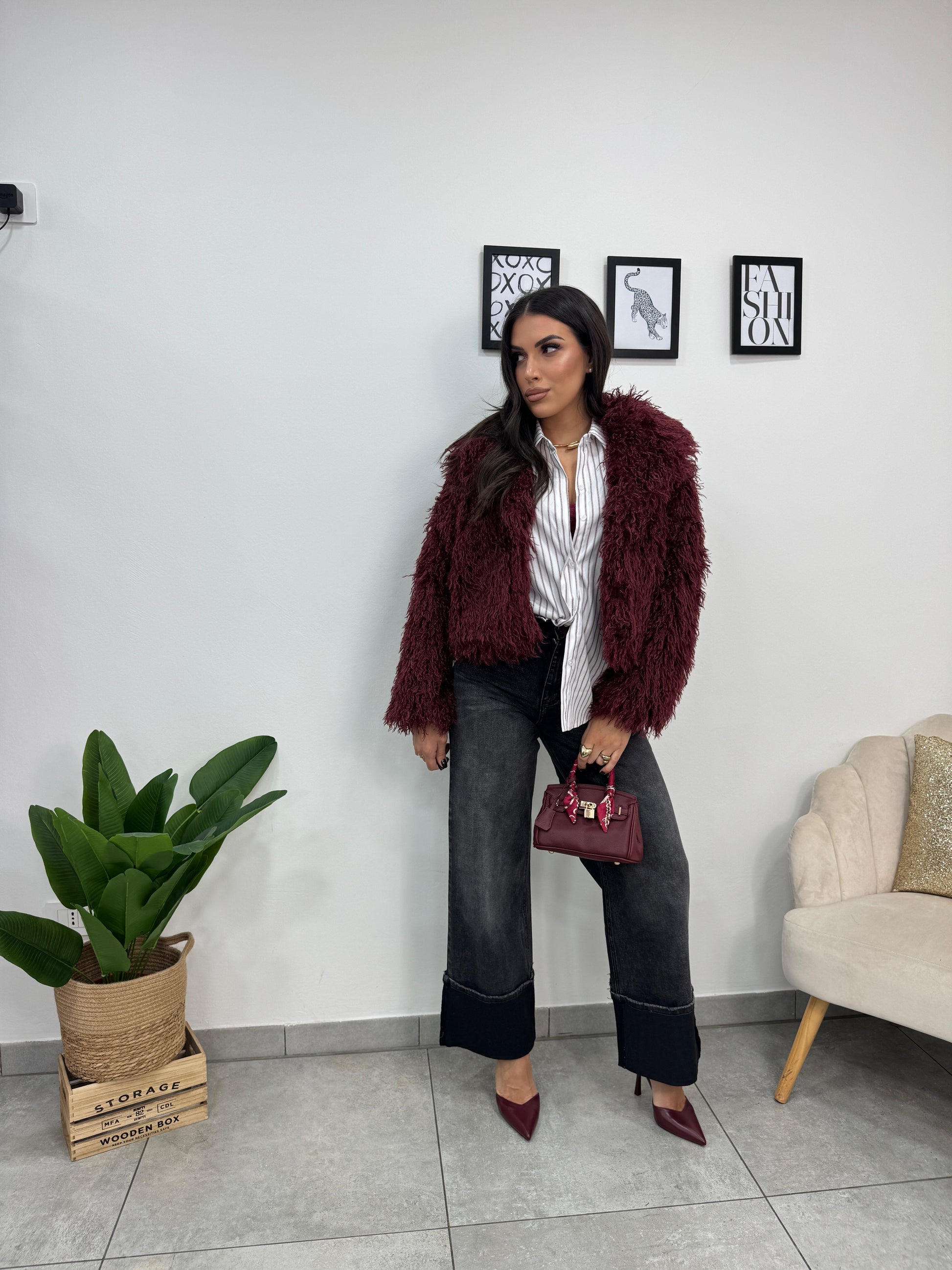 Ecopelliccia foderata internamente con pelo riccio, chiusura gancio, con tasche.