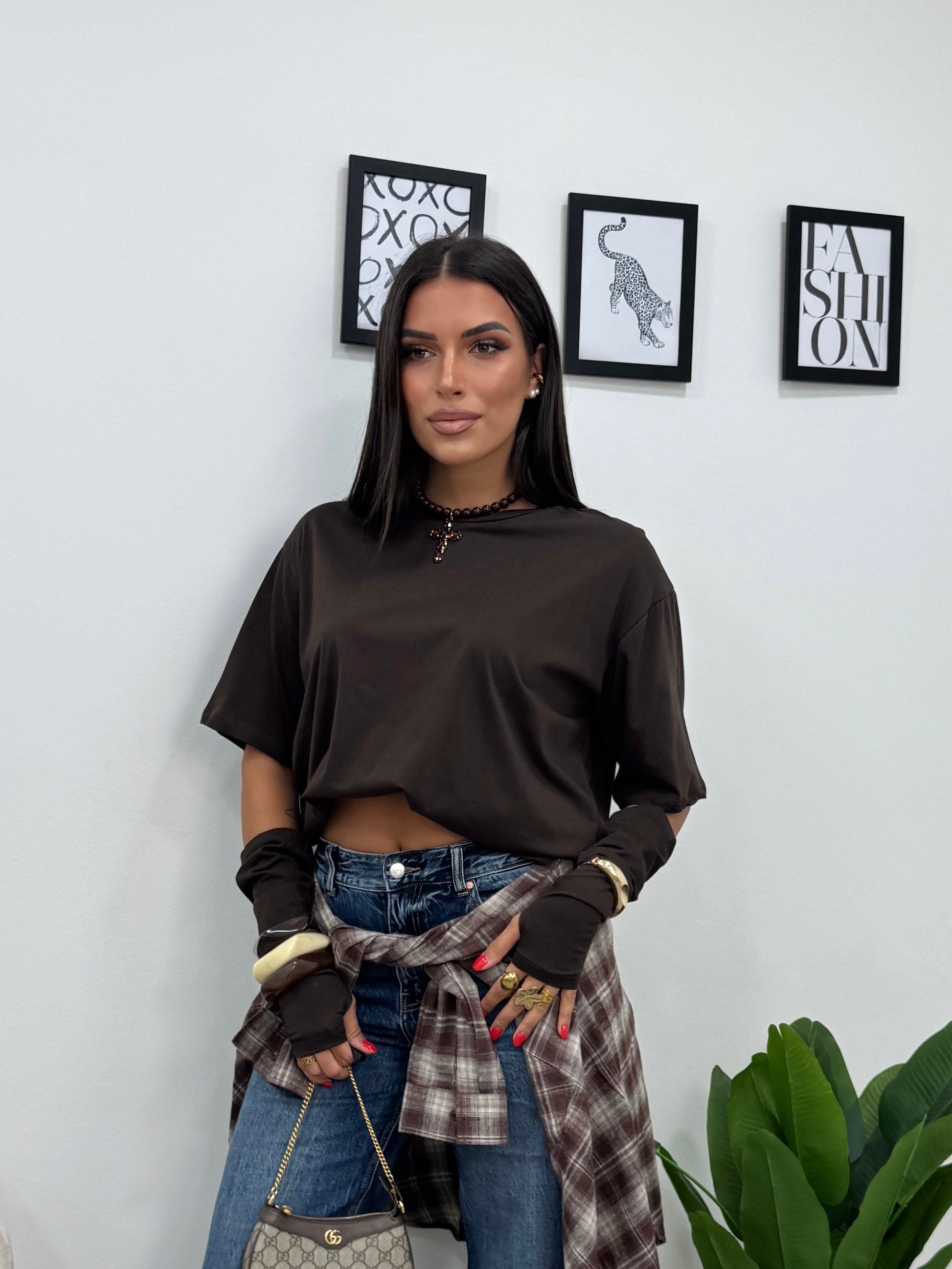 Girocollo Croce Marrone