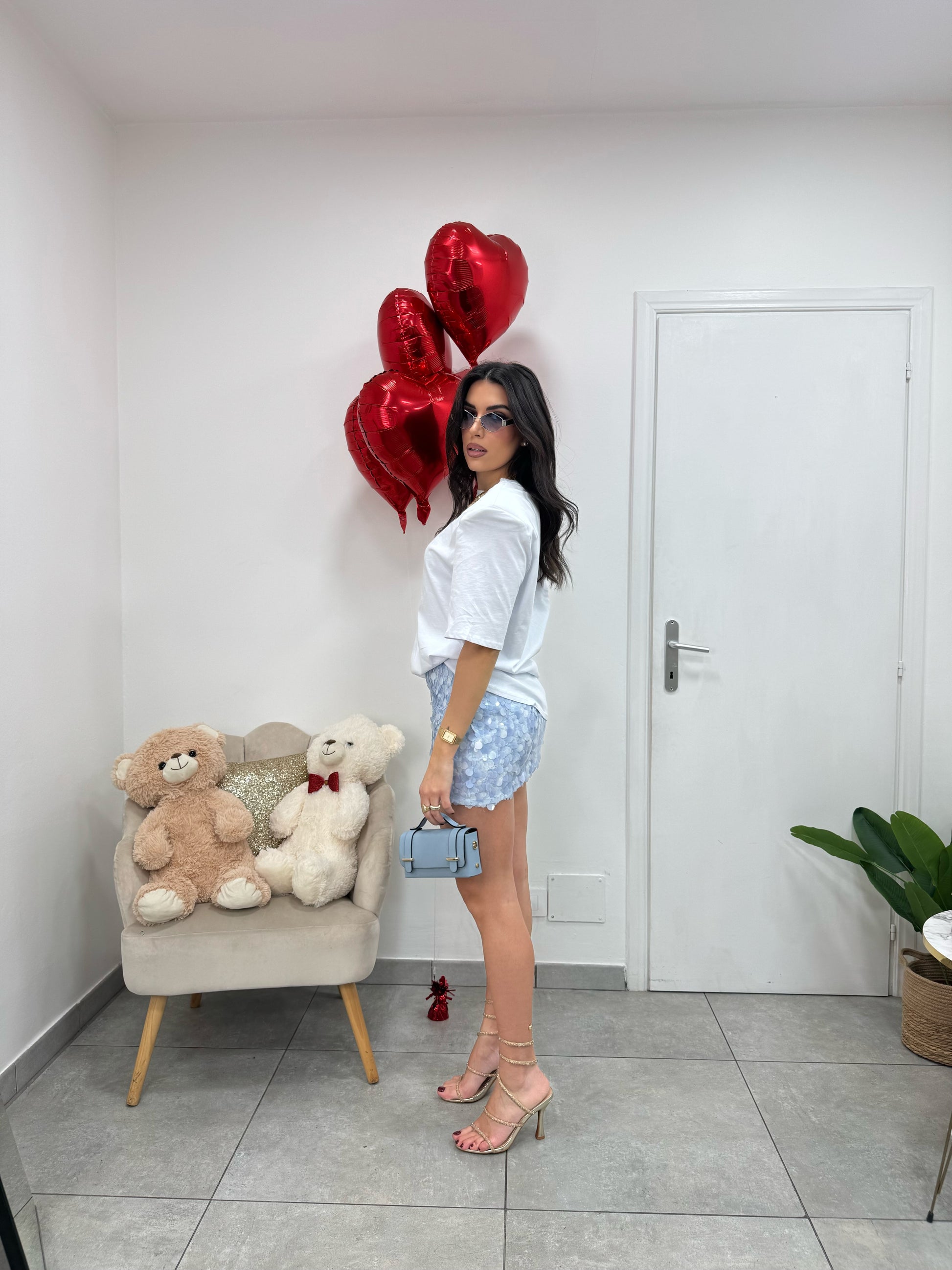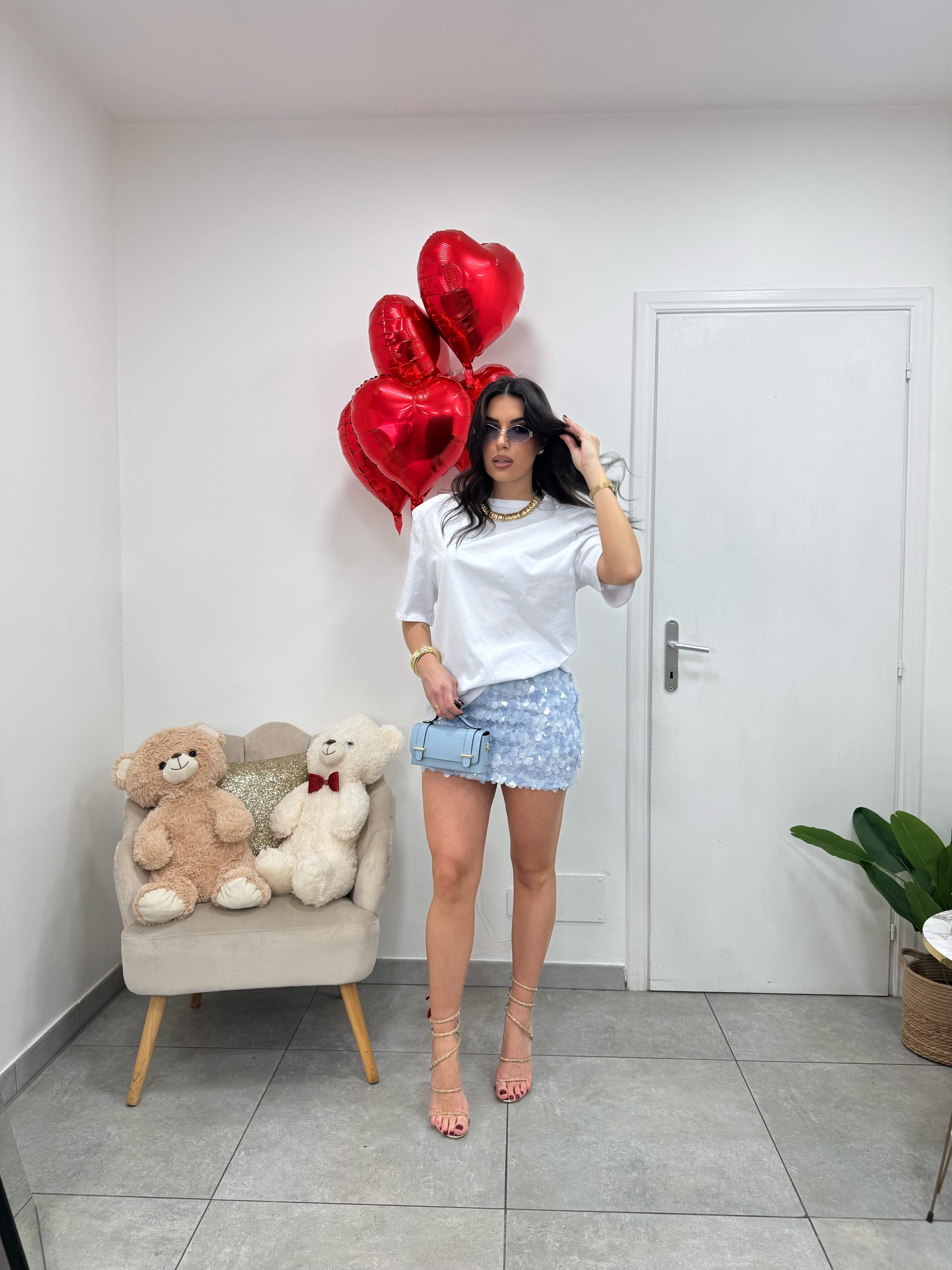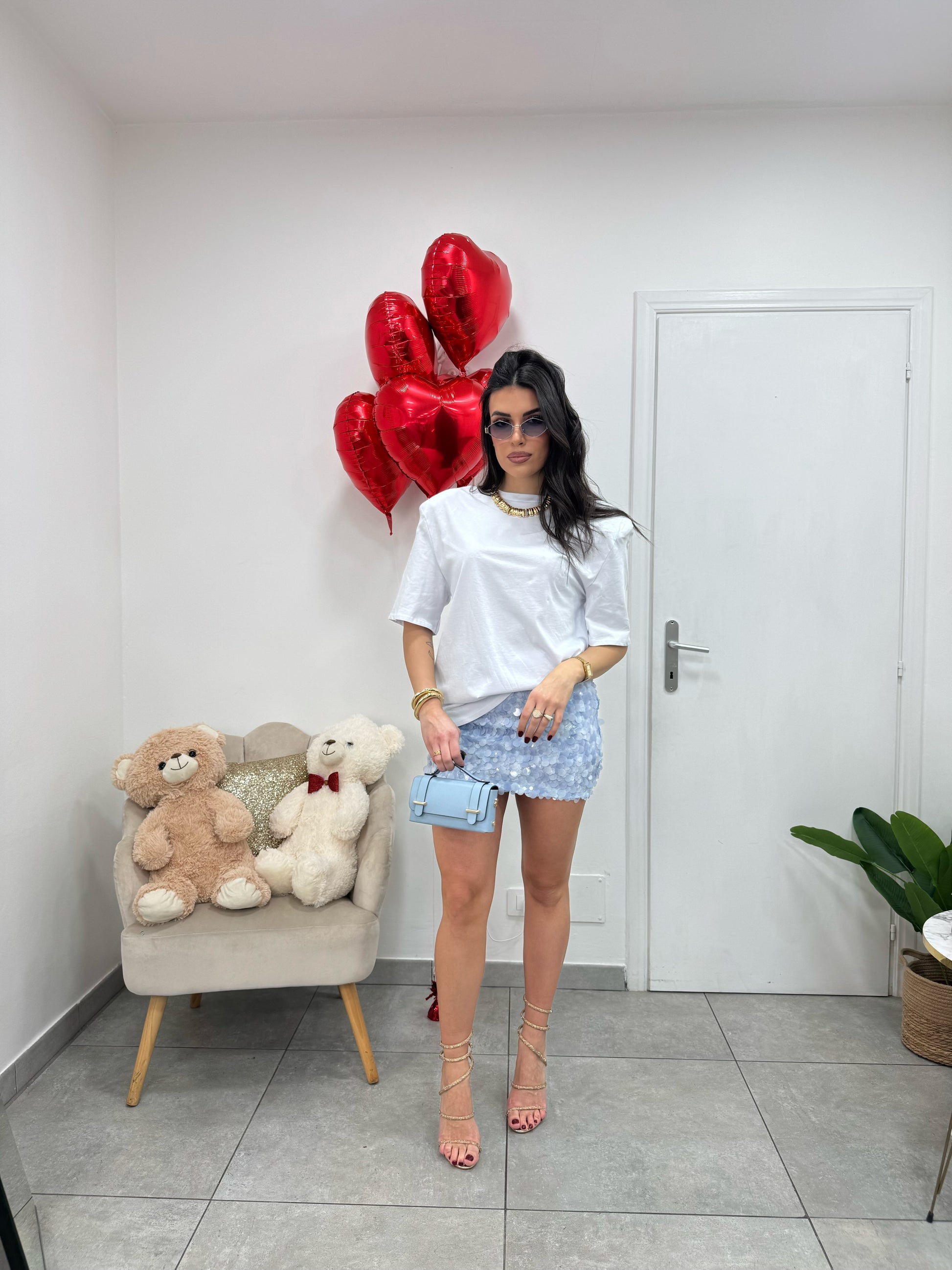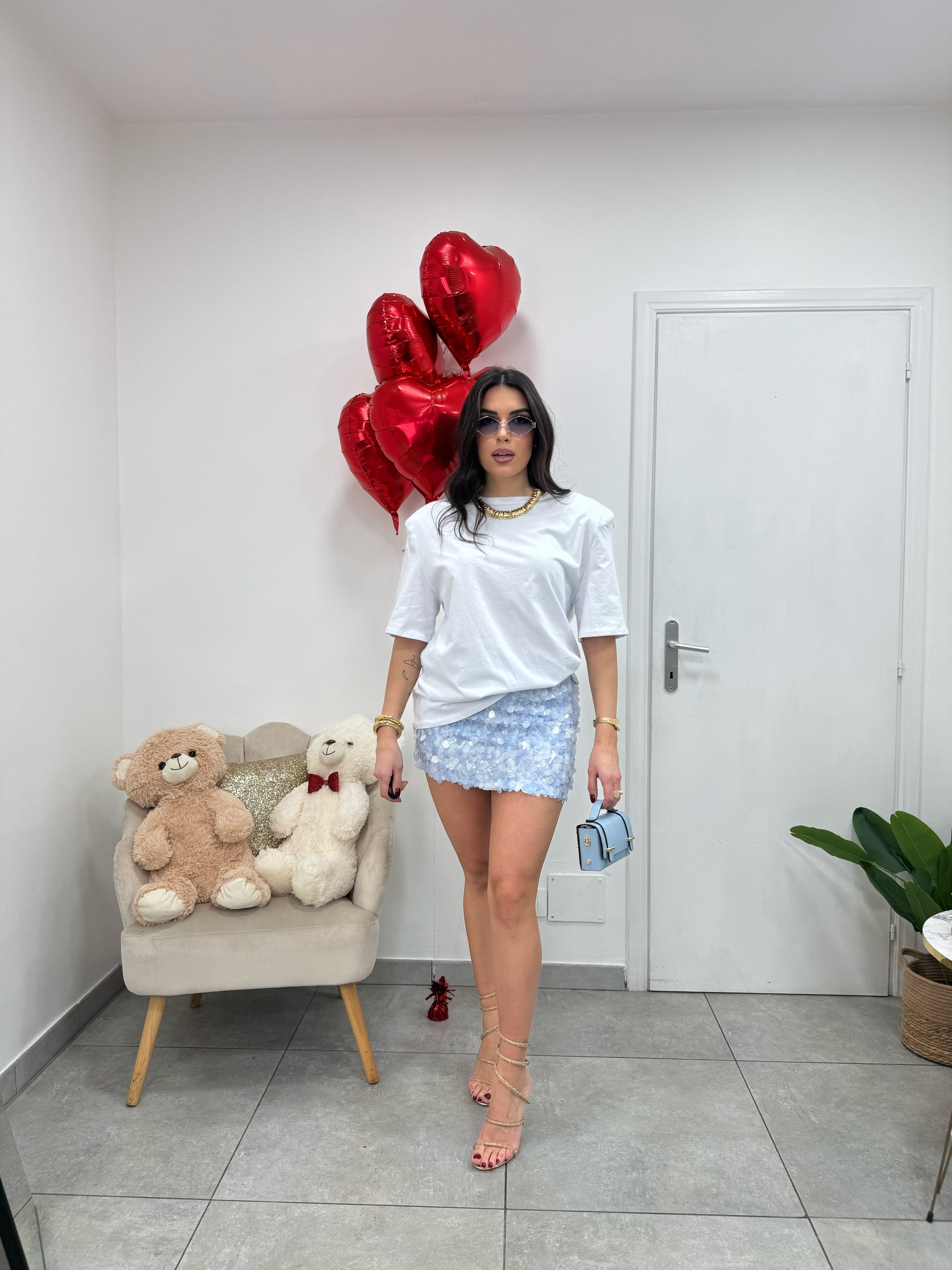 Gonna tubino con paillettes, foderata internamente. Lampo laterale.