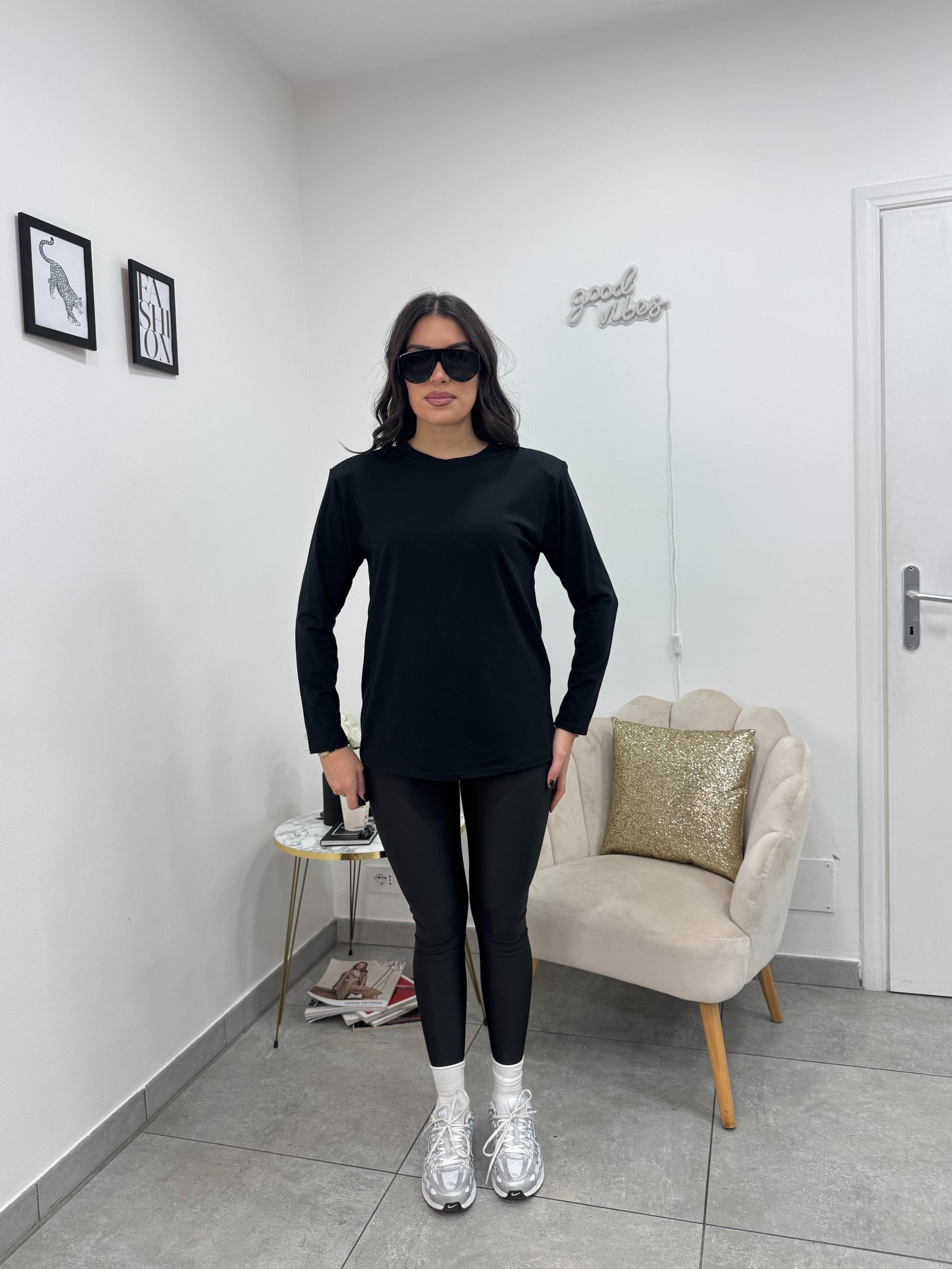 Maglia maniche lunghe oversize con spalline tinta unita.