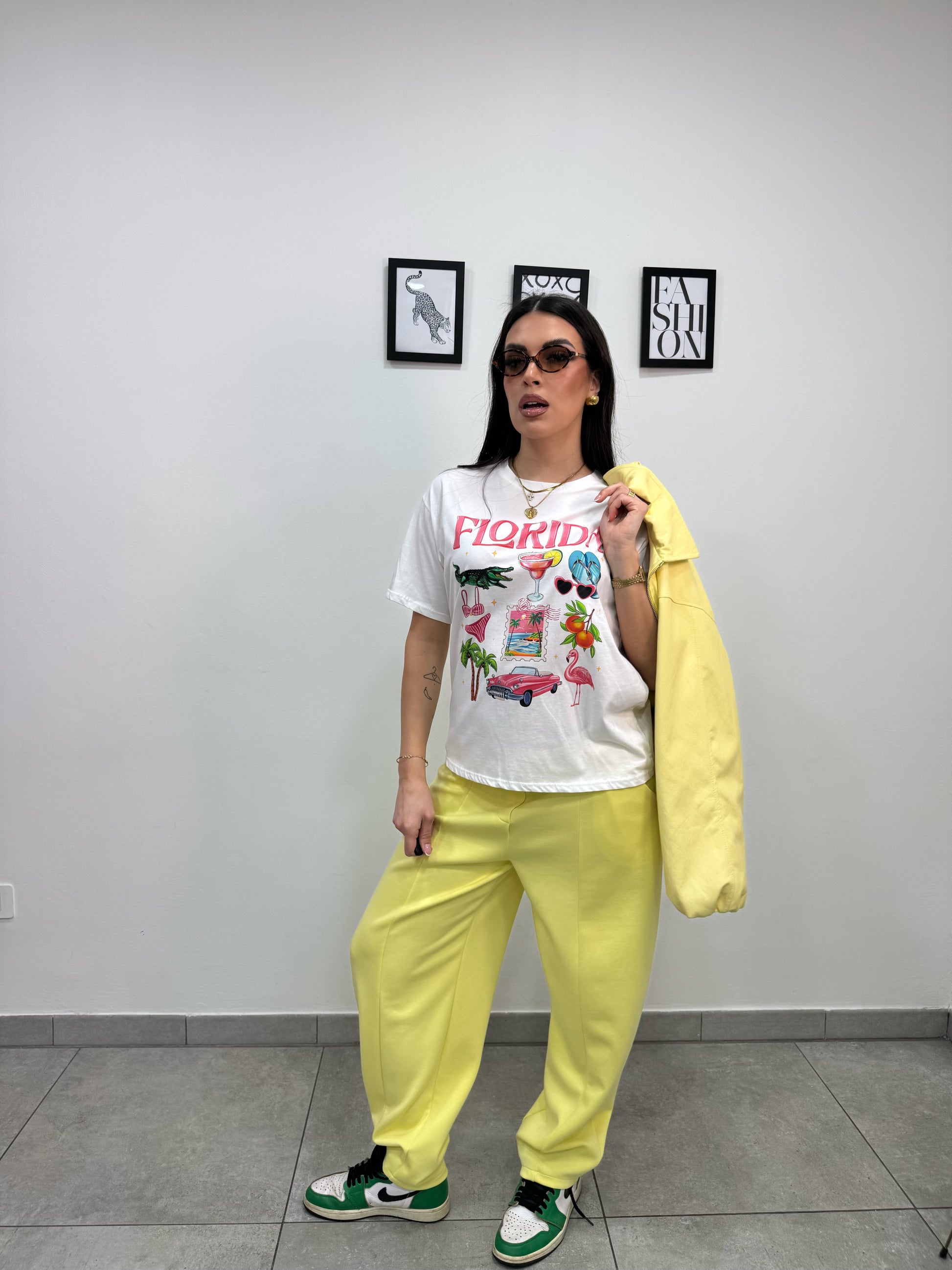 Pantalone tuta modello balloon con tasche, elastico in vita e cintura mood cravatta a righe.
